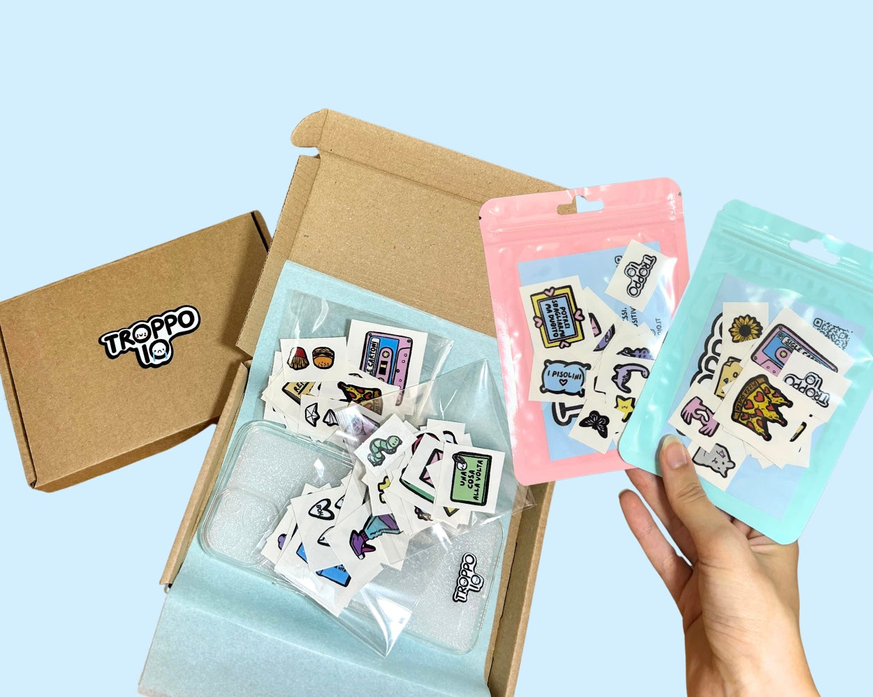 - gli sticker acquistati singolarmente arriveranno da te nell'iconica bustina color pastello